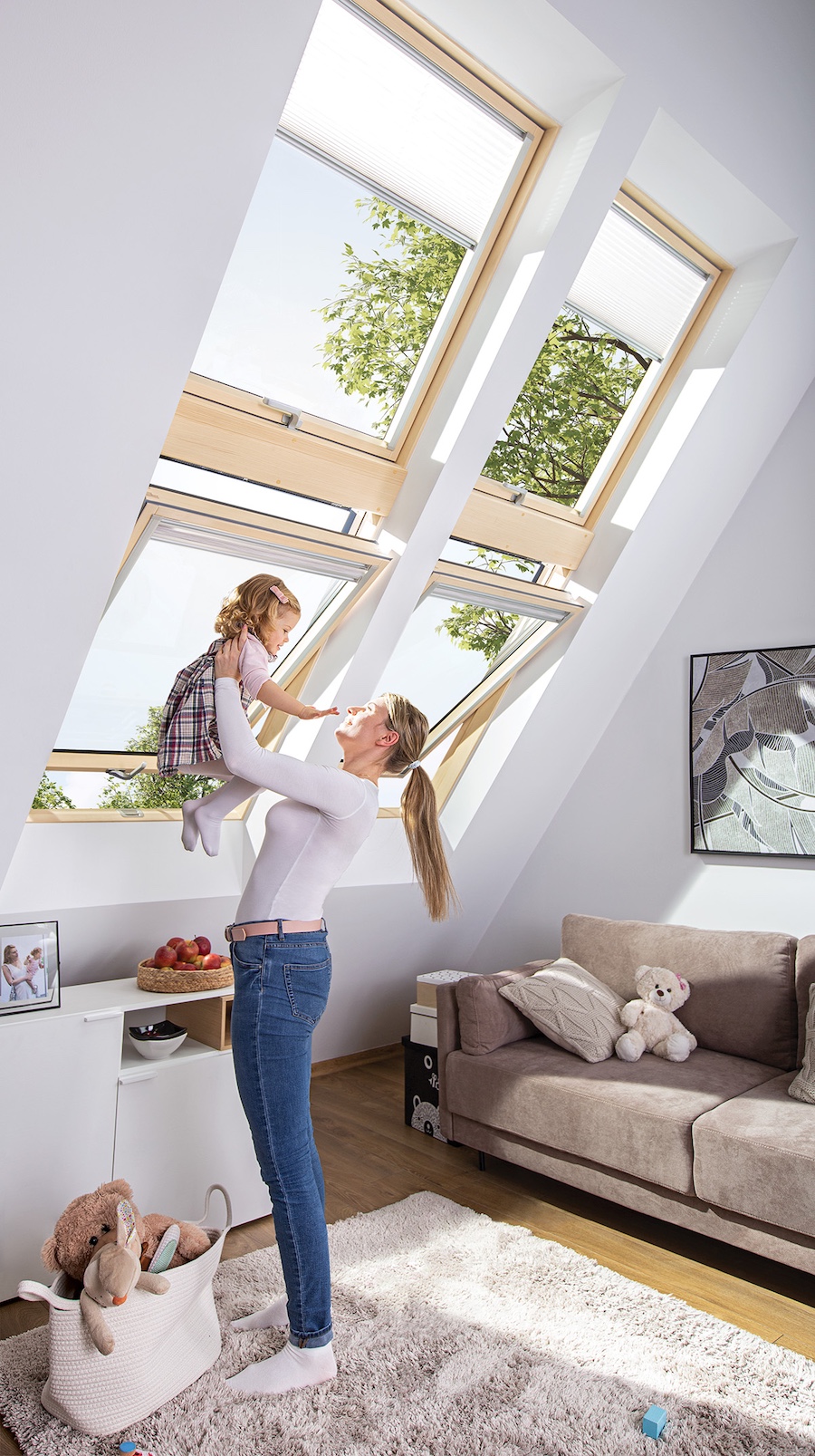 Warto również zwrócić uwagę na inne funkcjonalne elementy, w które są standardowo wyposażone okna dachowe GREENVIEW, jak np. powłoka łatwozmywalna, która ułatwia utrzymanie okna w czystości. W codziennym użytkowaniu znaczenie mają też kwestie bezpieczeństwa – np. zastosowanie wewnętrznej hartowanej szyby i wewnętrznej szyby z laminatem o klasie P2A wg EN 673. Na zamówienie okno dachowe może być też wyposażone w nawiewnik, który zapewnia dopływ świeżego powietrza bez wychładzania wnętrza.