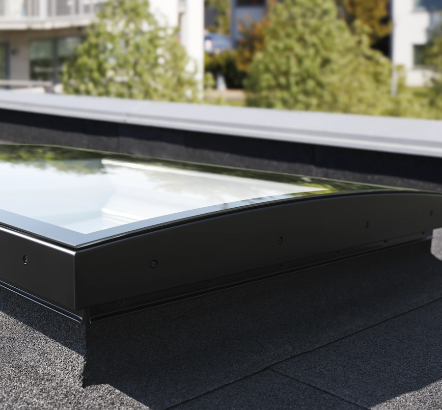 - sferyczny moduł szklany (do dachów o nachyleniu od 0° do 15°). W konstrukcji produktu zastosowano unikalną technologię zakrzywionego szkła, która umożliwia łatwe odprowadzenie wody deszczowej z powierzchni – nawet w dachach o kącie nachylenia 0 stopni. Wyjątkowy design sprawia, że okno z tym modułem idealnie nadaje się do płaskich dachów zielonych.