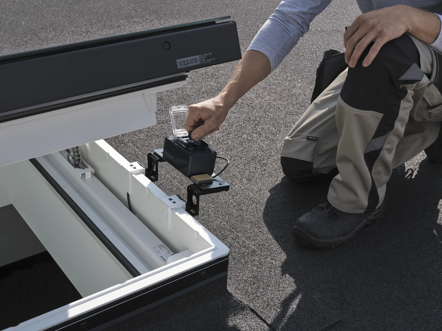 Na co dzień, gdy wyłaz nie jest używany do prac technicznych, gwarantuje dostęp do światła dziennego i możliwość bezpiecznej wentylacji wnętrz, ponieważ fabrycznie wbudowany czujnik deszczu automatycznie zamyka skrzydło przy pierwszych kroplach – bez ryzyka zalania wnętrza.