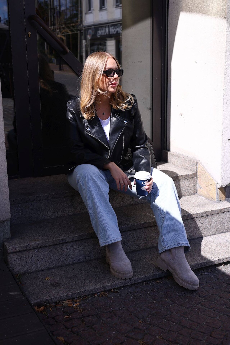 – Nie bój się bawić detalami w stylizacjach z ramoneską. Modele z ćwiekami, czy chociażby te z zamszu, mają zupełnie inny charakter niż te klasyczne, skórzane. Jeśli jesteś niska, wybieraj fasony krótsze – podkreślą talię i wydłużą sylwetkę. Kobiety wyższe mogą śmiało sięgać po wersje oversize, które wyglądają nowocześnie i świetnie komponują się z prostymi spodniami. Pamiętaj też, że ramoneska sprawdza się przy warstwowych stylizacjach – jesienią możesz ją nosić na grubszy sweter, a wiosną – razem z lekką sukienką w kwiaty czy spódnicą midi. Właśnie dzięki temu staje się kurtką całoroczną, a nie tylko elementem przejściowej garderoby – dodaje stylistka.