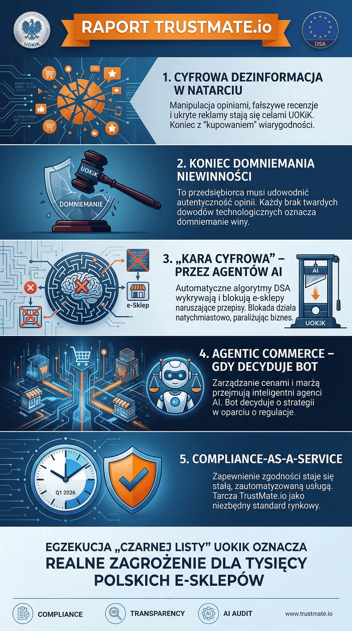 – Nielegalne praktyki związane z manipulowaniem recenzjami, przestała być niewidoczna dla algorytmów nadzorczych. W 2026 roku każda niezweryfikowana opinia zostawia ślad, który systemy kontrolne UOKiK identyfikują w czasie rzeczywistym. – mówi Jerzy Krawczyk, prezes zarządu TrustMate.io. – Albo Twoje zaufanie jest mierzalne i weryfikowalne przez algorytmy, albo Twoja marża zostanie skonsumowana przez kary administracyjne. W świecie AI i tzw. Agentic Commerce, gdzie decyzje zakupowe coraz częściej podejmuje sztuczna inteligencja, nie ma miejsca na szarą strefę lub nielegalne praktyki, np. manipulowanie opiniami. Platformy, takiej jak TrustMate, staje się cyfrowym paszportem autentyczności, bez którego sklep po prostu przestaje istnieć dla nowoczesnego konsumenta i jego asystenta AI. – komentuje Jerzy Krawczyk, prezes zarządu TrustMate.io.
