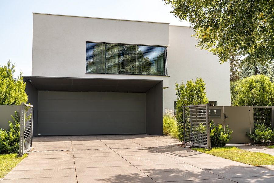 W budownictwie jednorodzinnym dużą popularnością cieszą się obecnie bramy segmentowe. Zbudowane są one z poziomych, połączonych ze sobą paneli, które przesuwają się po prowadnicach i chowają pod sufitem. Taki sposób otwierania pozwala w pełni wykorzystać przestrzeń na podjeździe i wewnątrz garażu – nie trzeba zostawiać dodatkowego miejsca przed bramą, co ma duże znaczenie na działkach o niewielkiej powierzchni.
